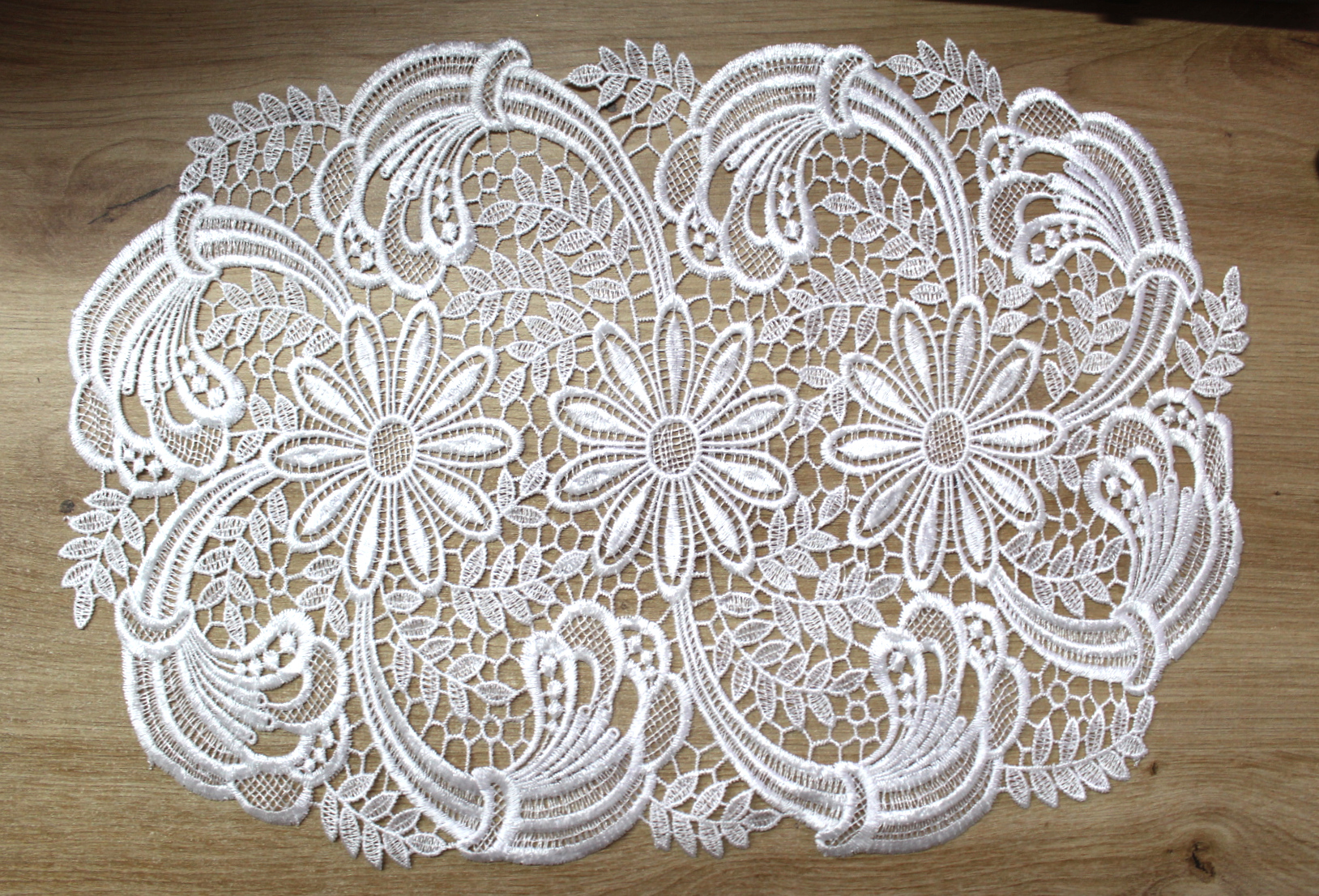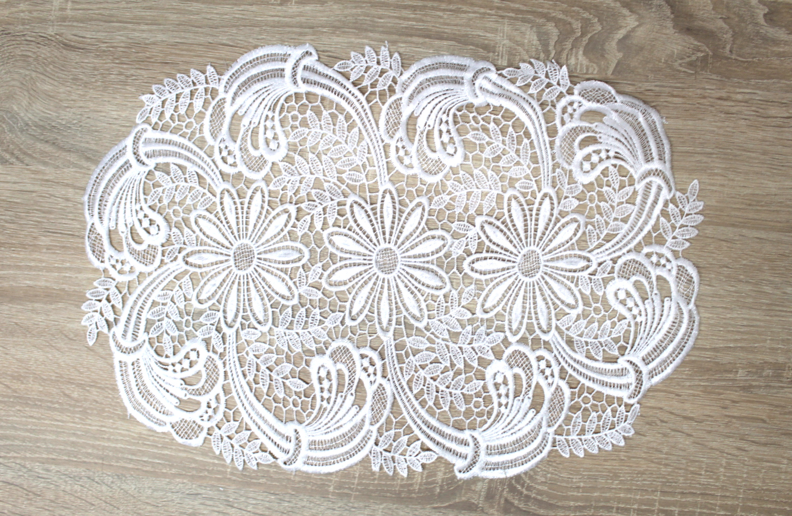 Serwetka gipuira OWALNA 40x30 cm biała KWIATY