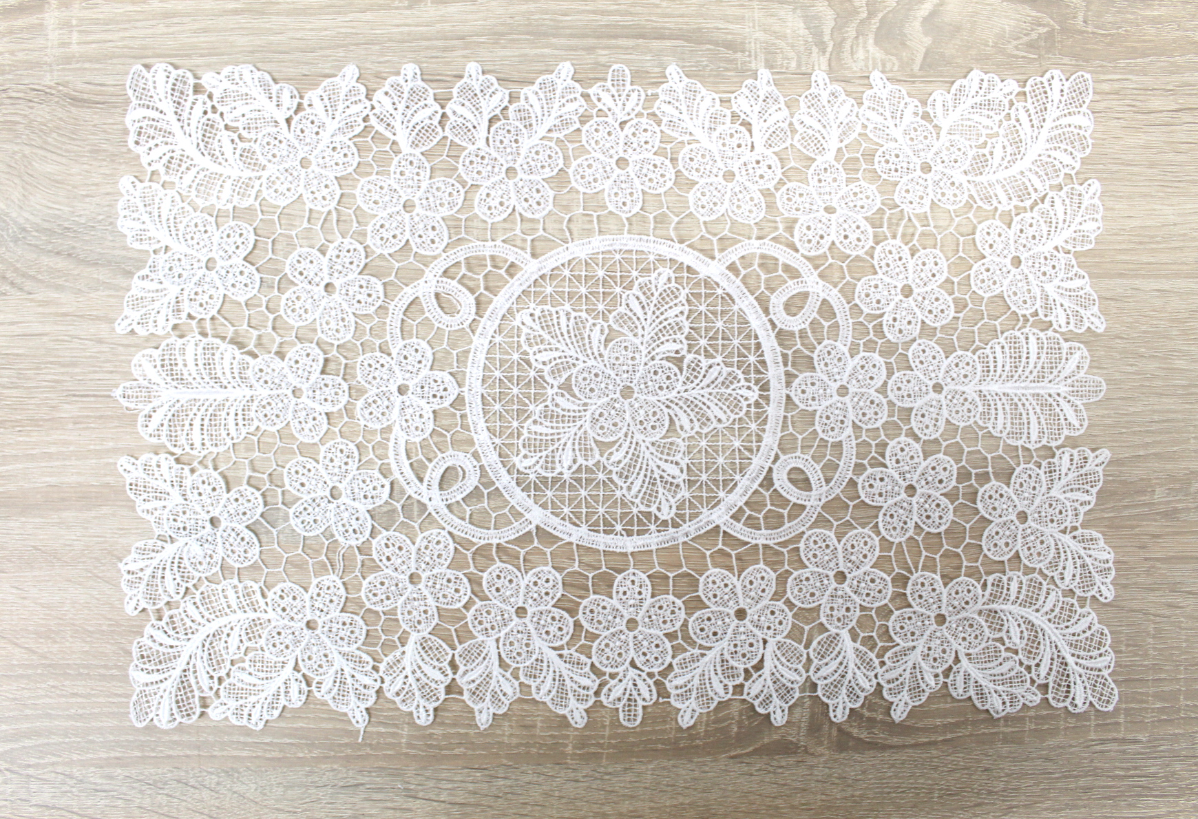 Serwetka gipuira PROSTOKĄTNA 40x30 cm biała KWIATY, LIŚCIE