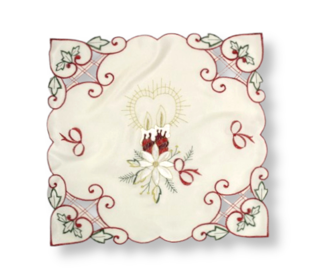 Serwetka świąteczna KREMOWA wyszywany wzór (Poinsecja, swie świece) 30x30 cm