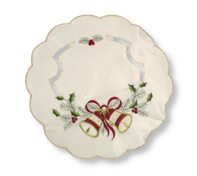 Serwetka świąteczna KREMOWA wyszywany wzór (Dzwonki) 30 cm