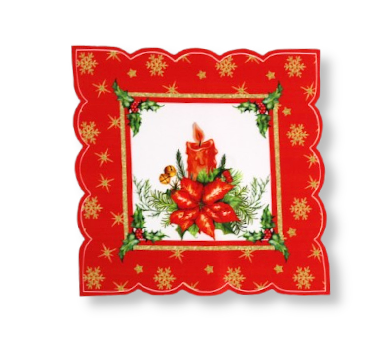 Serwetka świąteczna KWADRATOWA 30x30 cm czerwono biała ŚWIECA