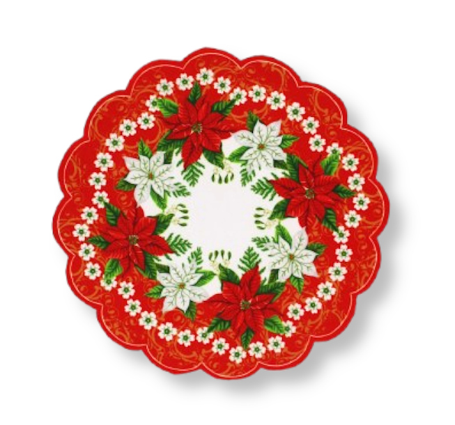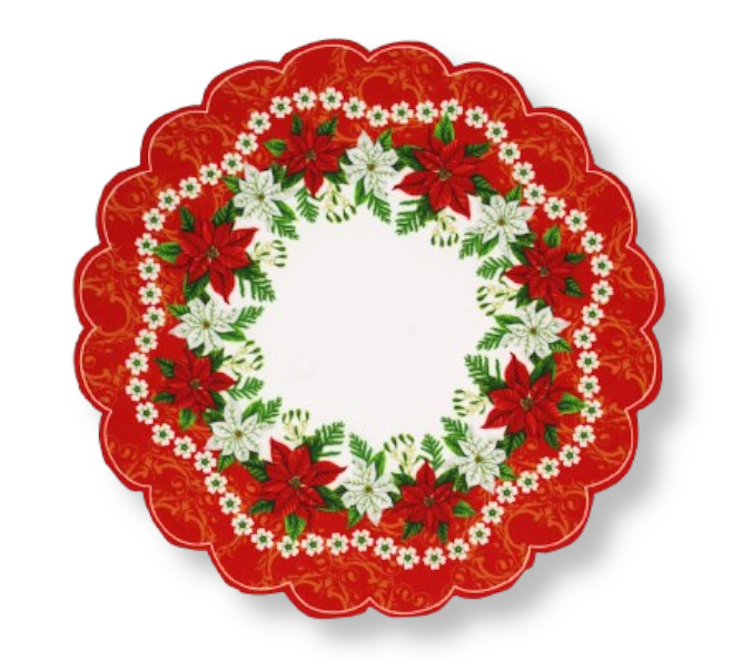 Serwetka świąteczna OKRĄGŁA 40 cm biało czerwona POINSECJA
