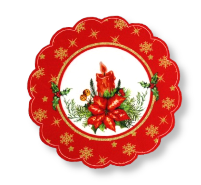 Serwetka świąteczna OKRĄGŁA 30 cm czerwono biała ŚWIECA
