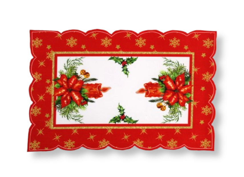 Serwetka świąteczna OKRĄGŁA 40 cm biało czerwona STROIK ZE ŚWIECĄ