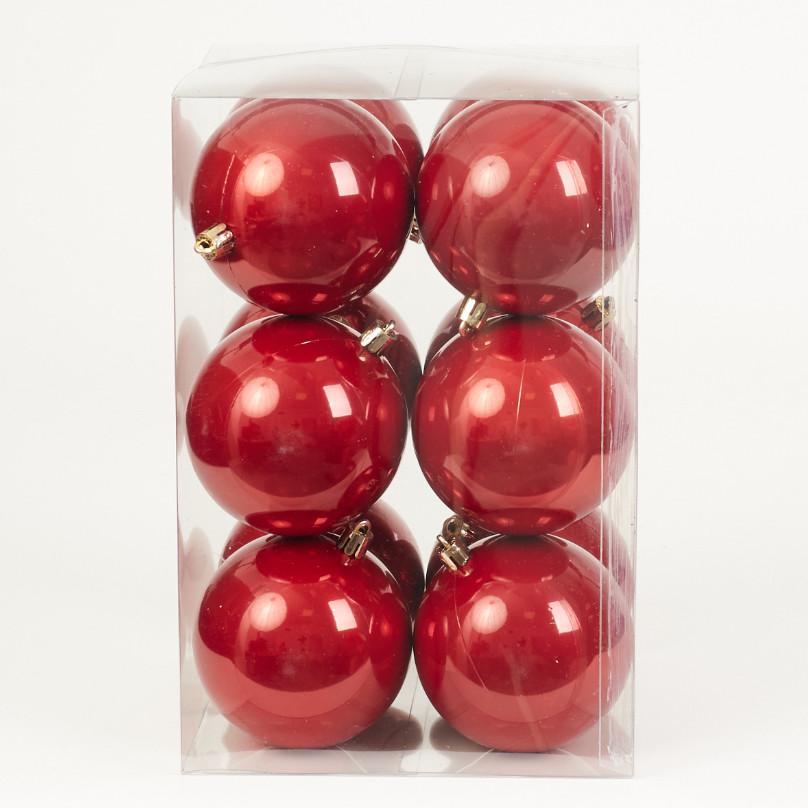 Bombki plastikowe perła 8 cm (12szt.) CZERWONE