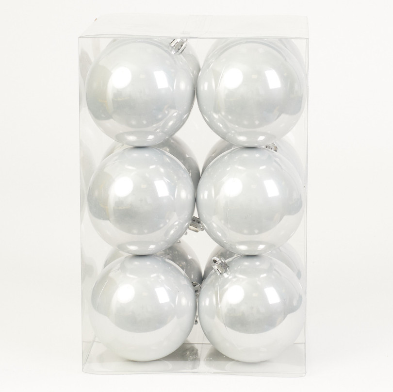 Bombki plastikowe perła 8 cm (12szt.) SREBRNE