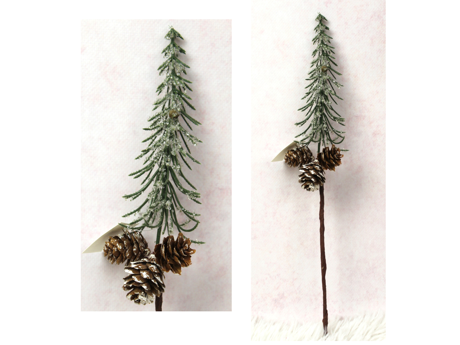 Choinka na piku 3 szyszki wys. 40 cm zielona posypana kryształkami