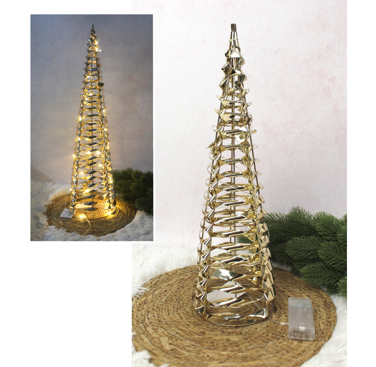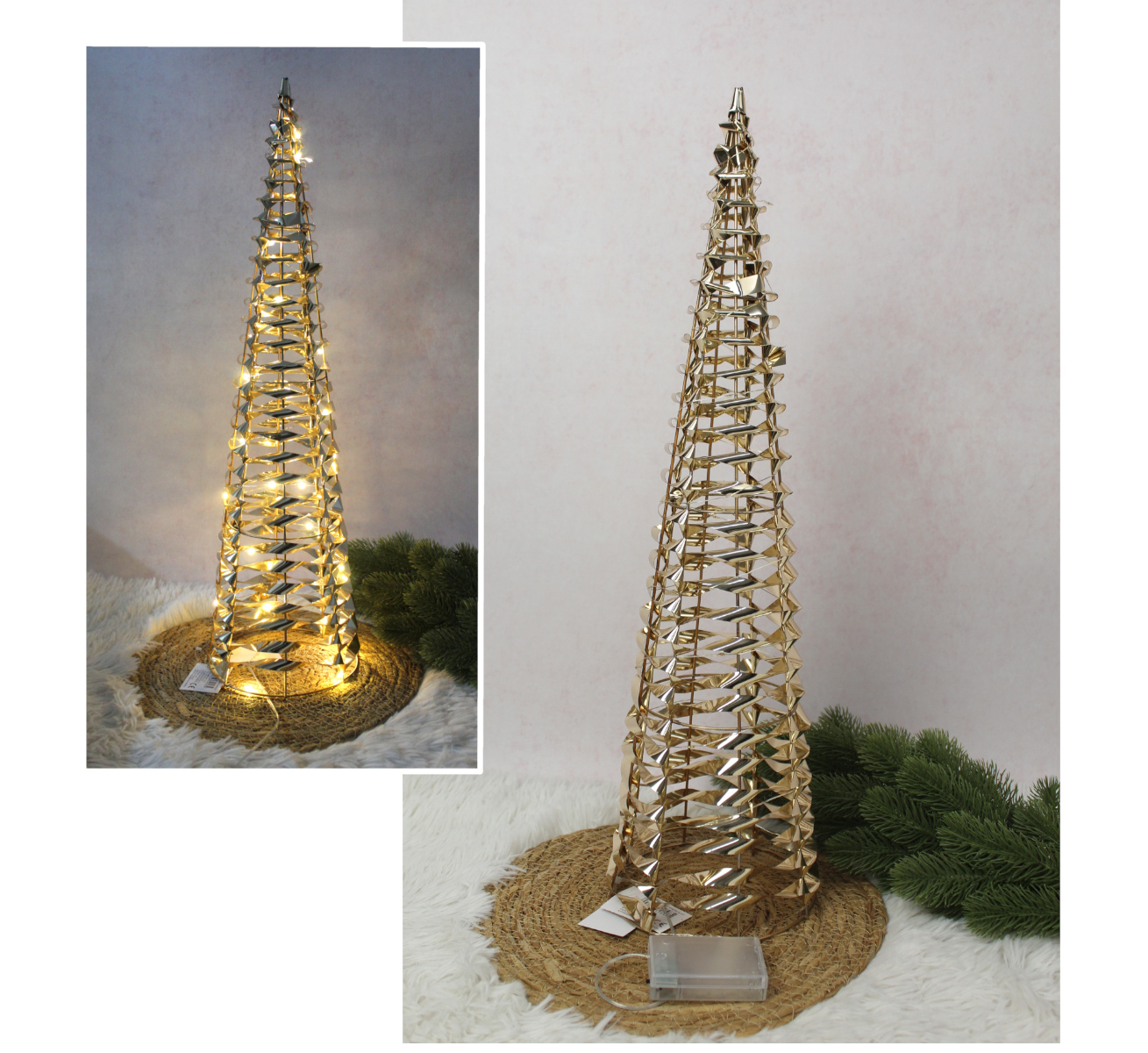Dekoracja CHOINKA STOŻEK 30 LED na stelażu z drutu z folią złotą 60x16 cm