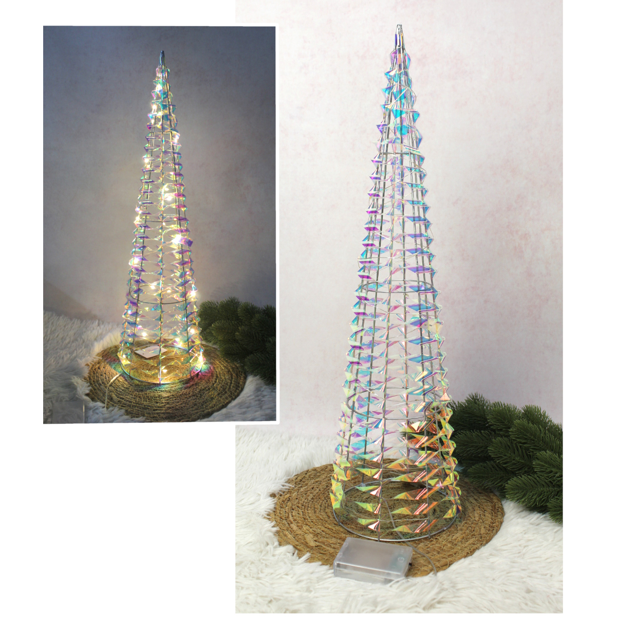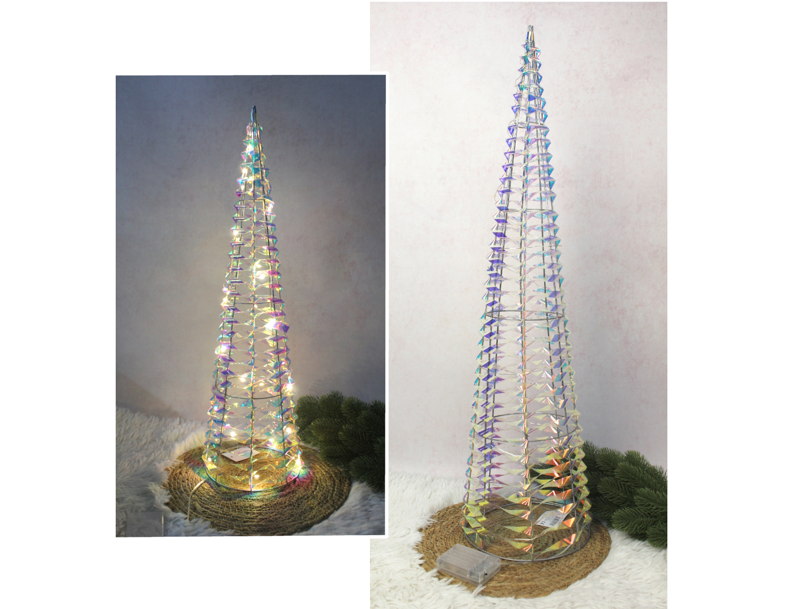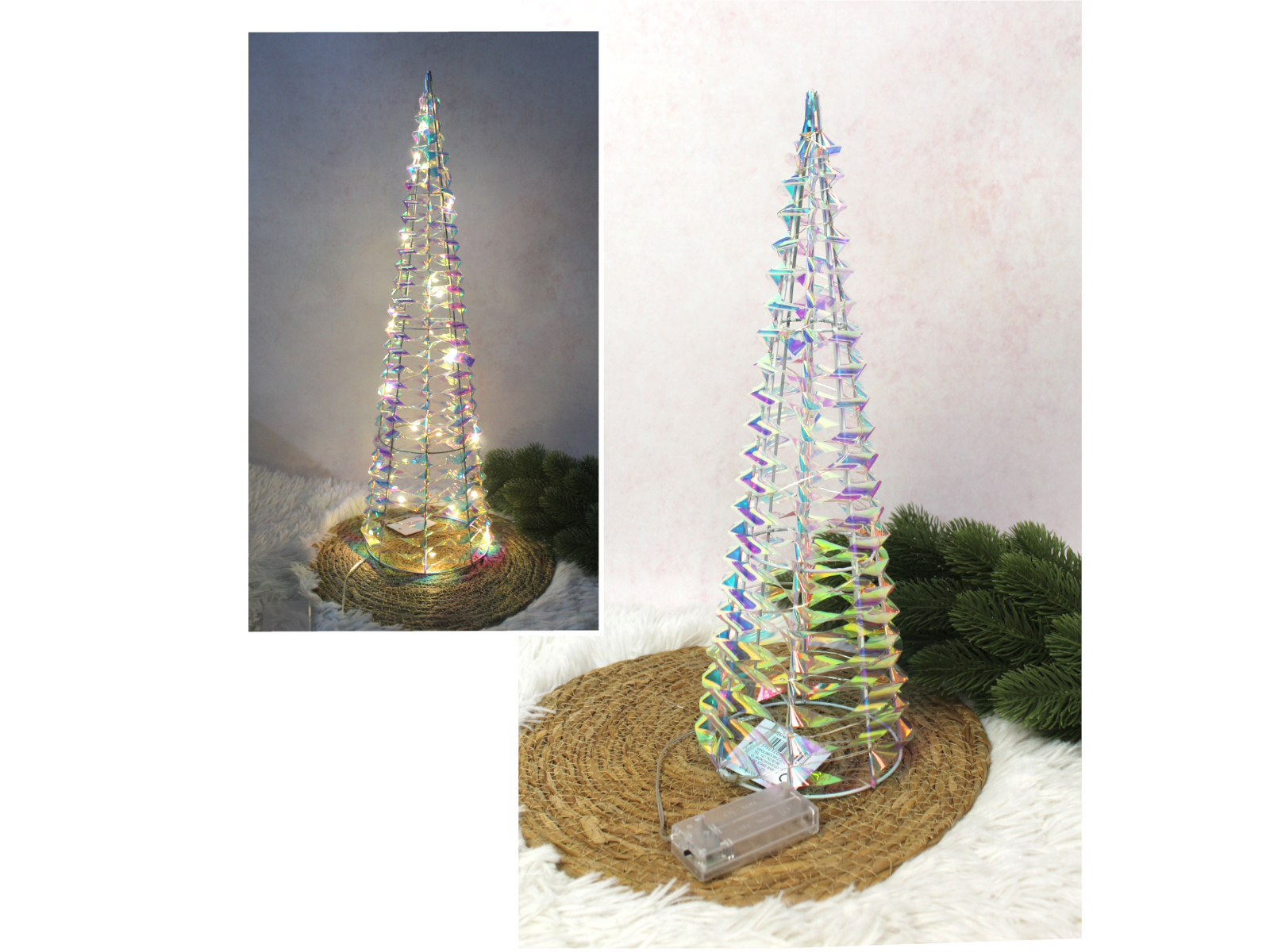 Dekoracja CHOINKA STOŻEK 30 LED na stelażu z drutu z folią holograficzną 60x16 cm