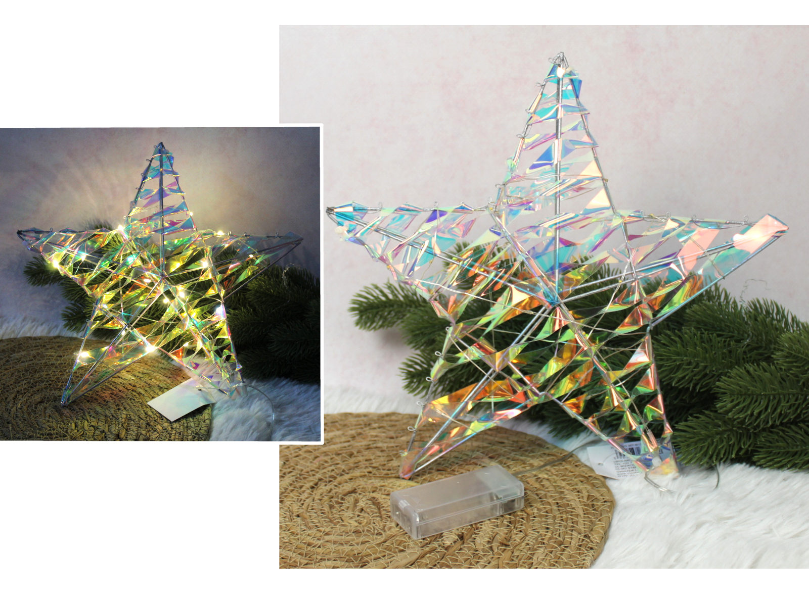 Dekoracja GWIAZDA 20 LED na stelażu z drutu z folią holograficzną 30 cm