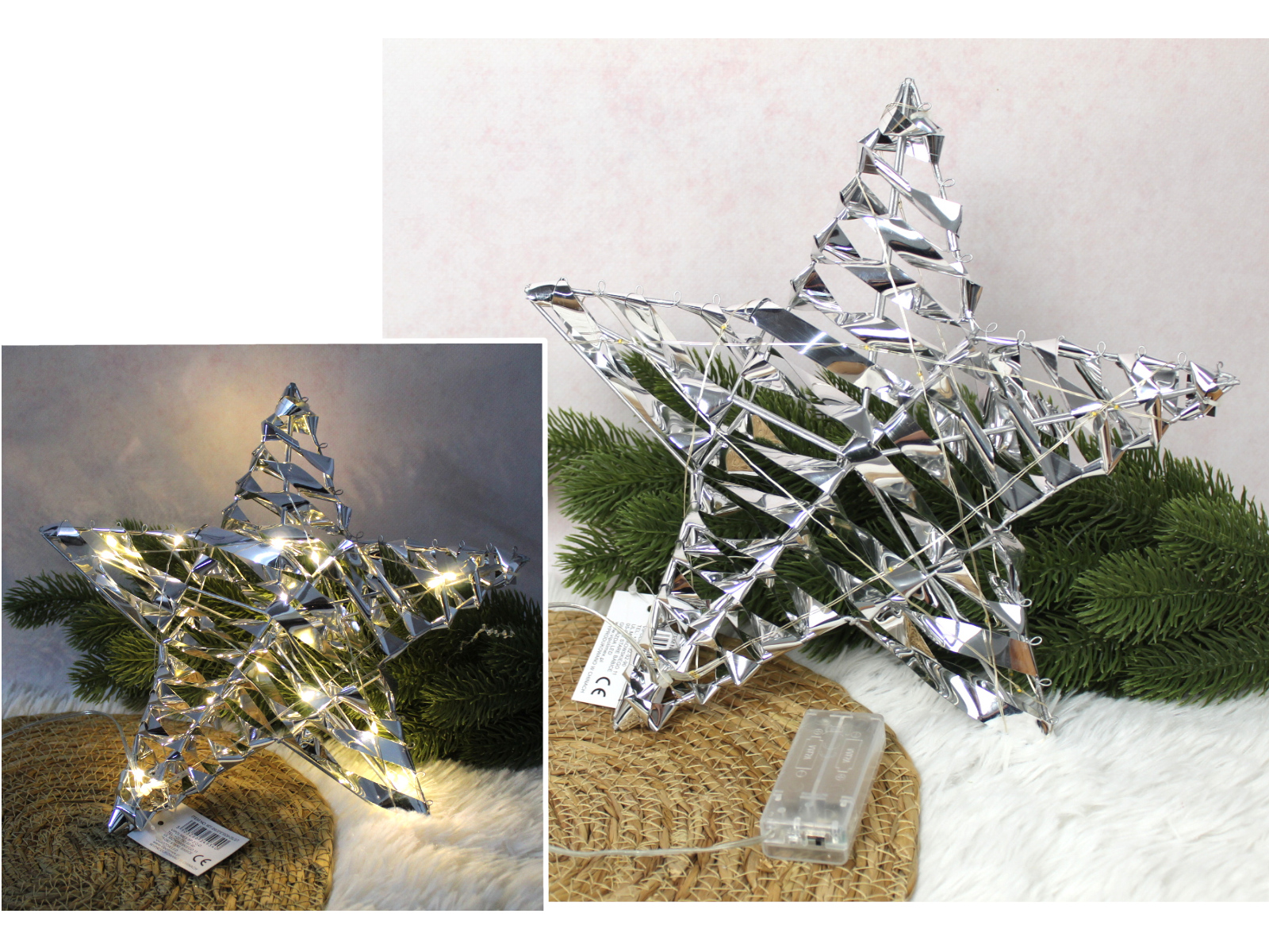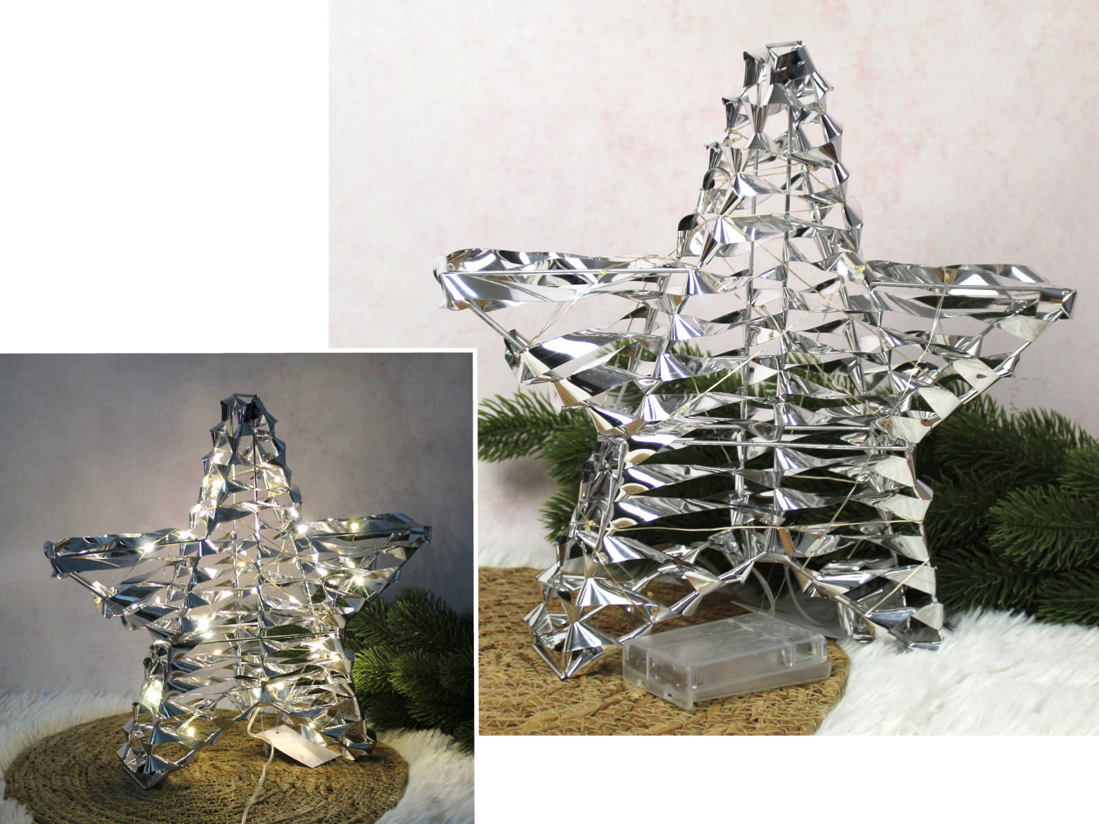 Dekoracja GWIAZDA 20 LED na stelażu z drutu z folią srebrną 30 cm