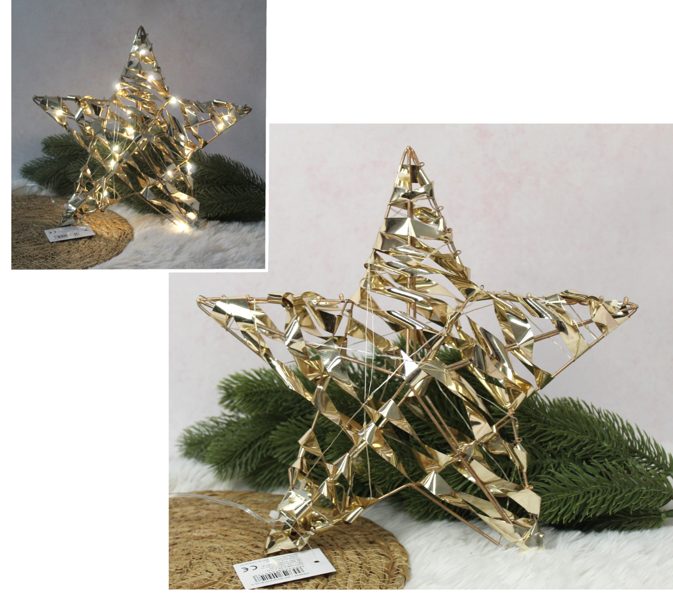 Dekoracja GWIAZDA 20 LED na stelażu z drutu z folią złotą 30 cm