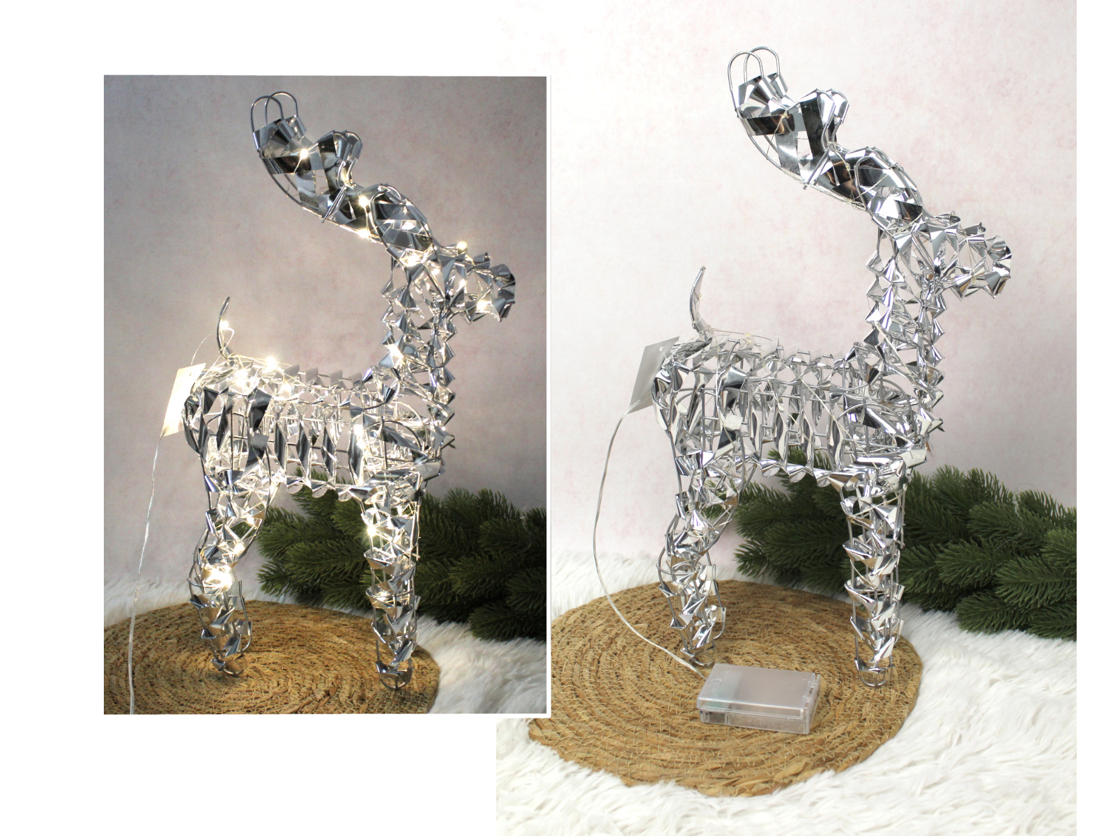Dekoracja RENIFER 40 LED na stelażu z drutu z folią srebrną 43x24x12 cm
