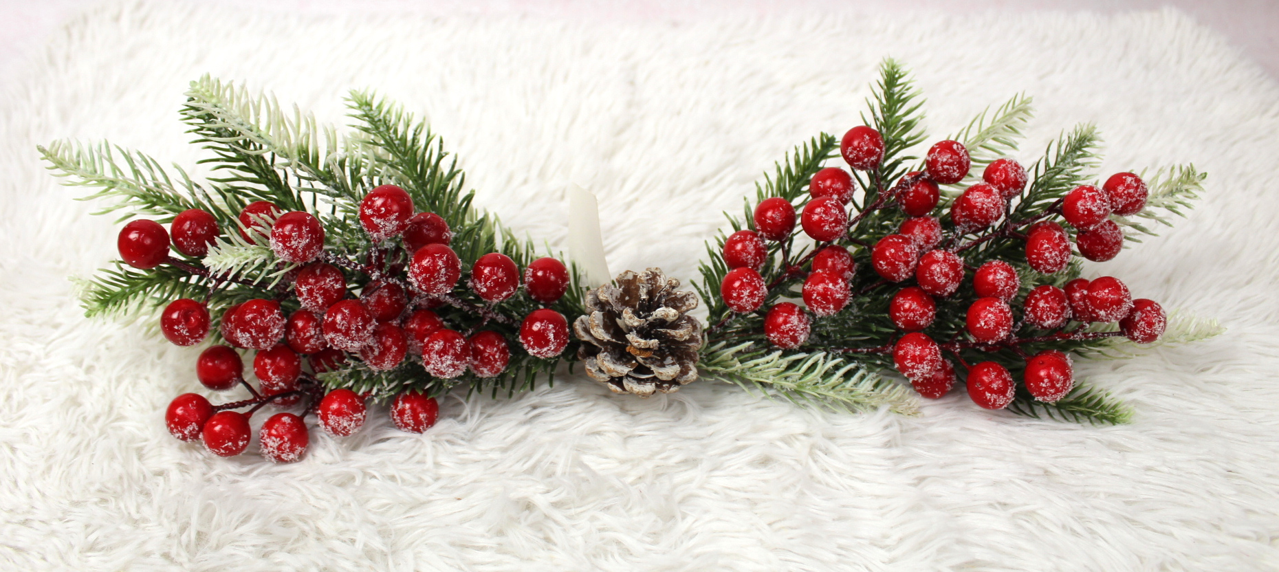 Gałązka, stroik świąteczny 50 cm świerk, szyszka, czerwone kulki