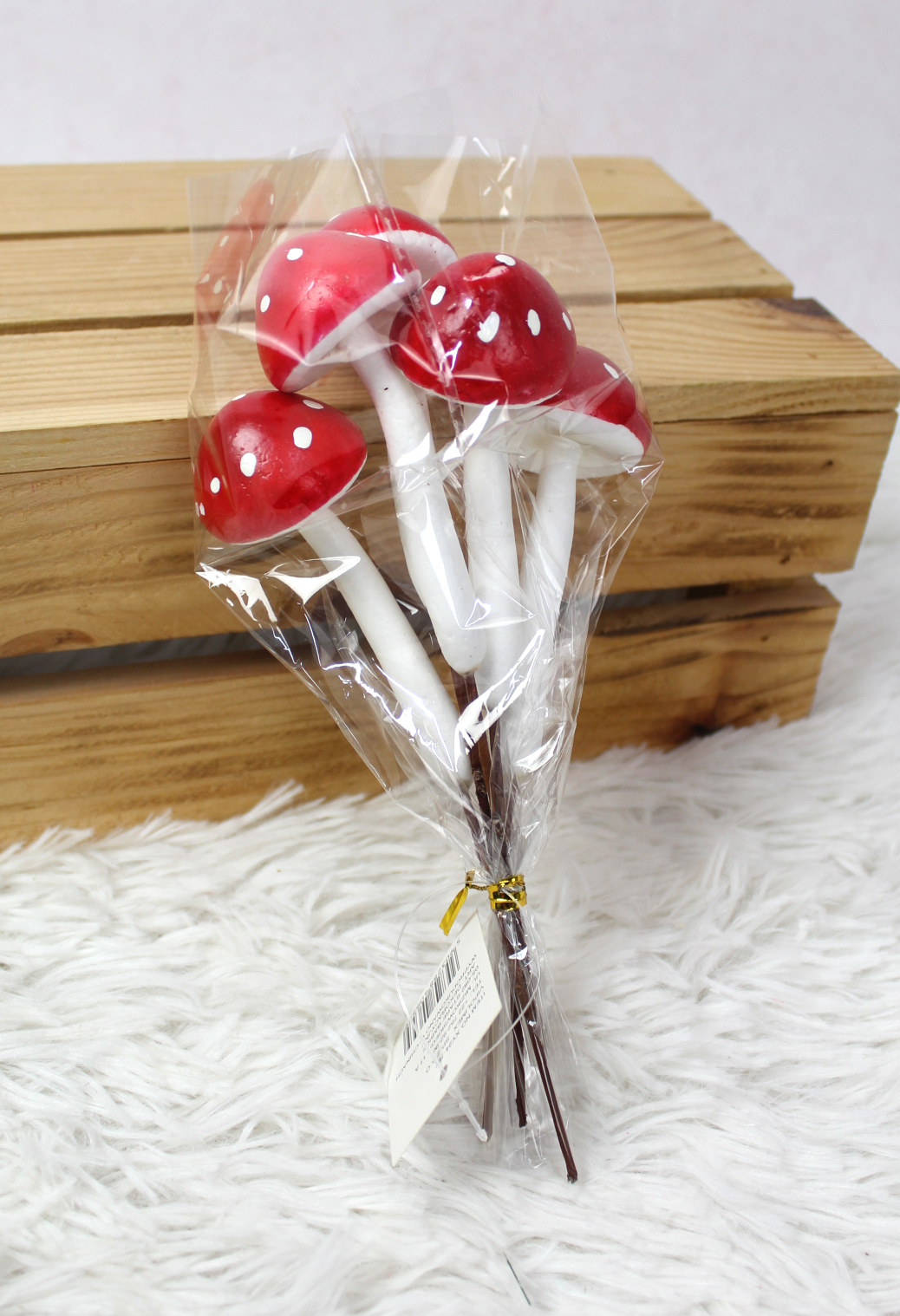 Grzybki styropianowe, dekoracyjne wys. 13 cm na piku CZERWONE - kpl 6 szt w folii