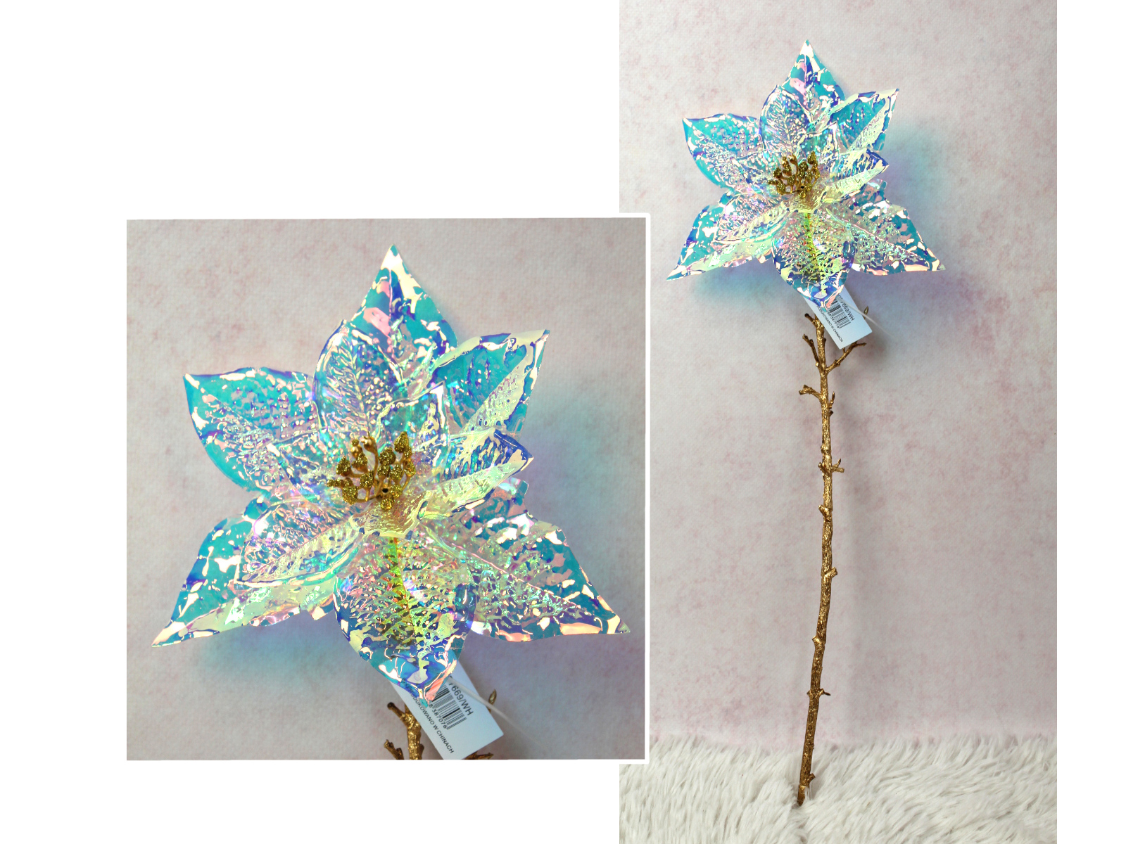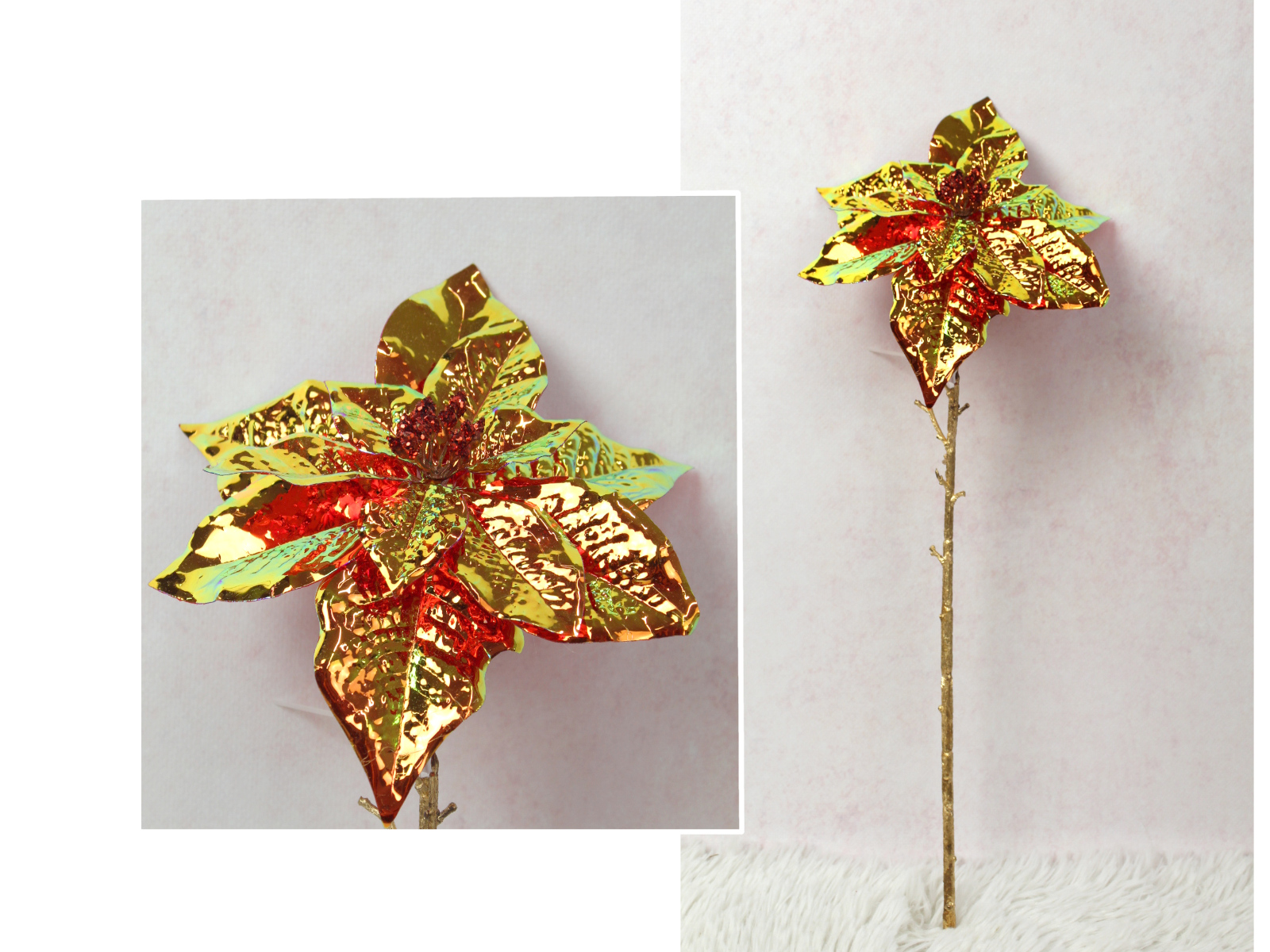 Kwiat pojedynczy POINSECJA Gwiazda Betlejemska wys. 49 cm (główka plastikowa 20x4 cm) HOLOGRAFICZNA