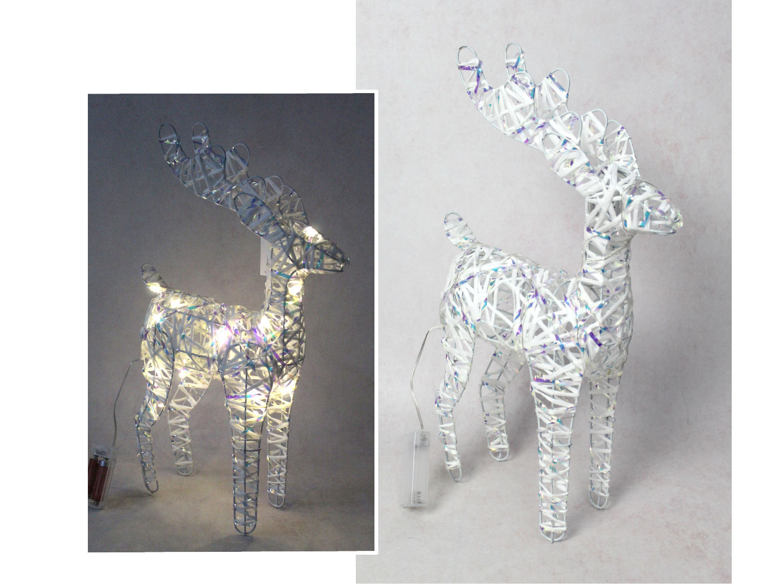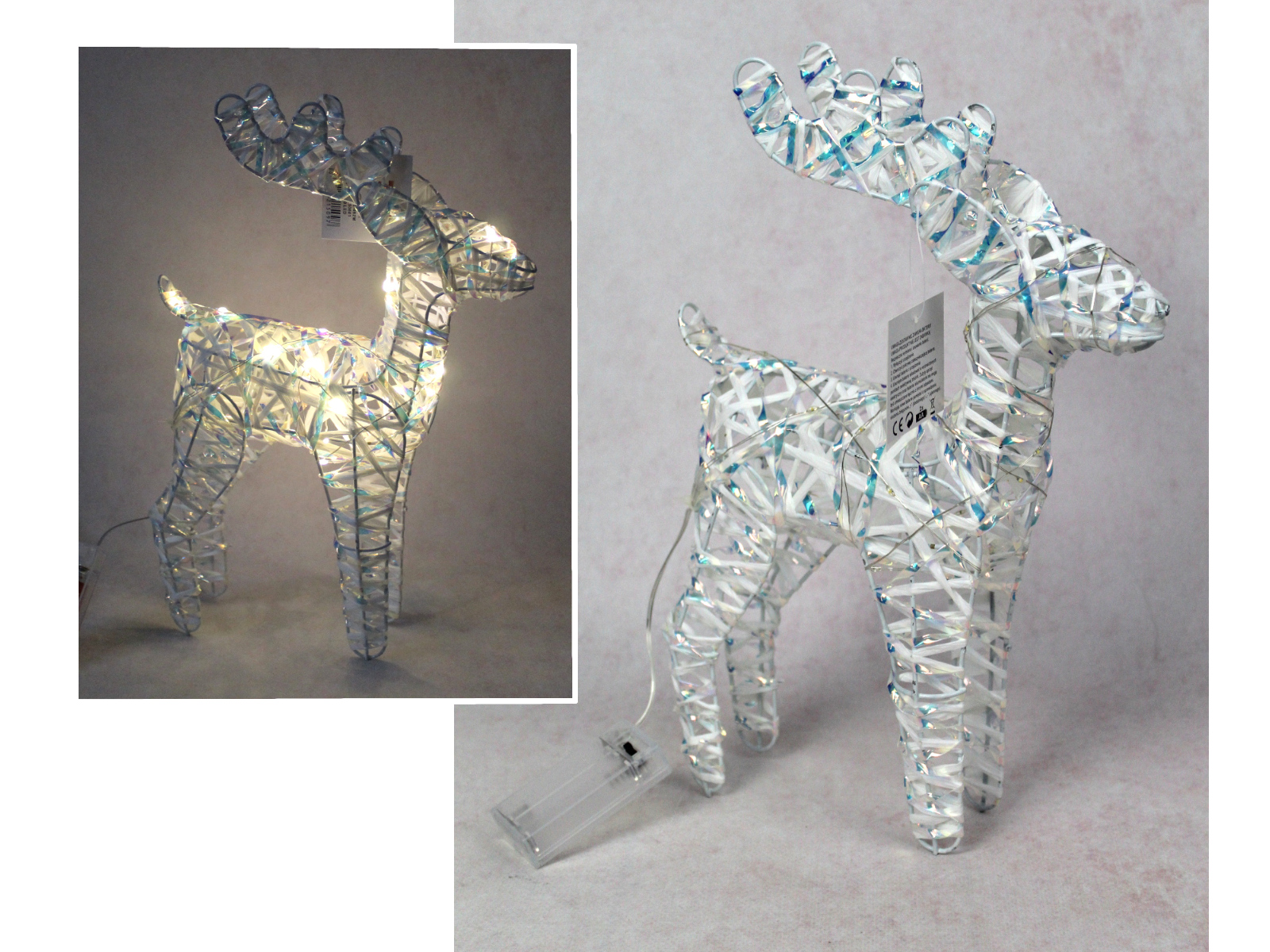 Dekoracja na stelażu z drutu z folią holograficzną i białym sznurkiem RENIFER 20 LED 45x26x10 cm