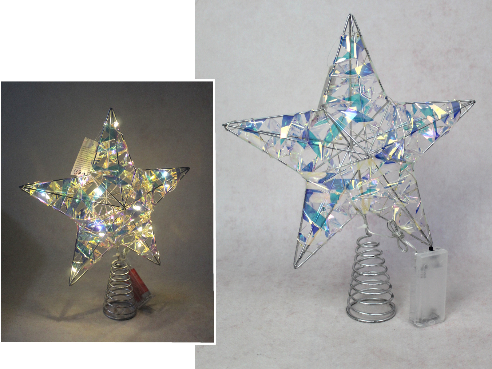 Dekoracja na stelażu z drutu z folią holograficzną GWIAZDA 20 LED 30x25x5 cm