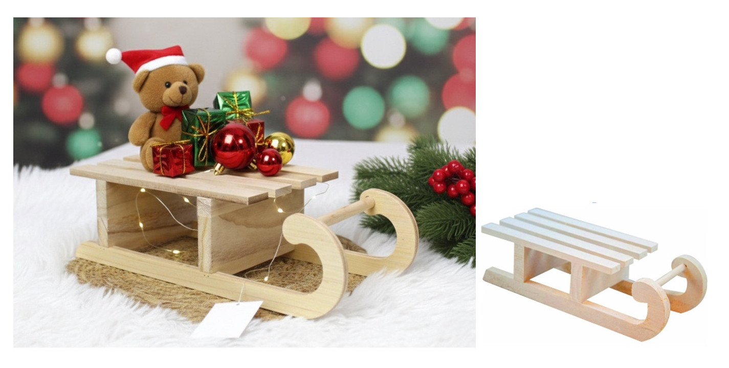 Dekoracja świąteczna SANIE drewniane naturalne 33x14x9,5 cm