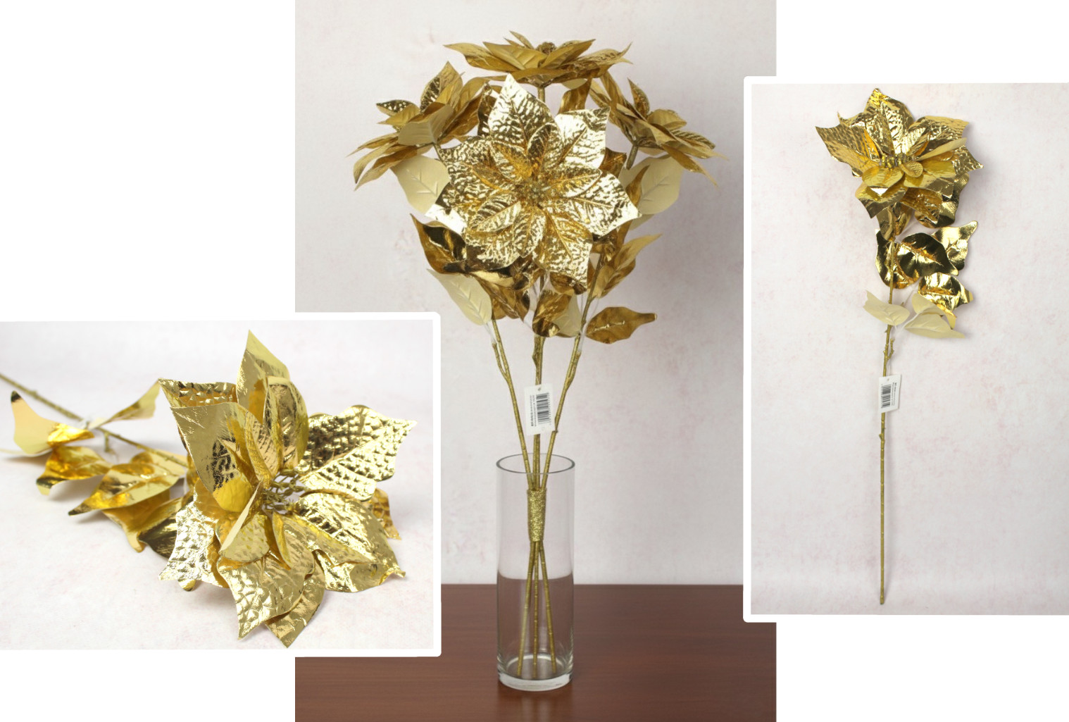 Kwiat GWIAZDA BETLEJEMSKA - POINSECJA tw. sztuczne 70 cm główka 22 cm ZŁOTA