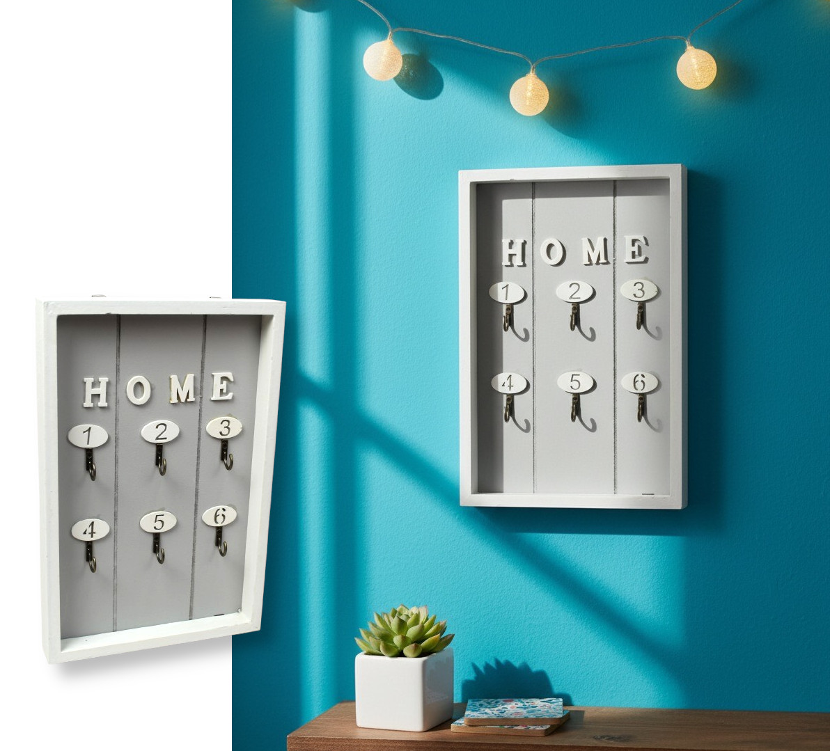 Wieszak drewniany na klucze HOME szaro-biały 30x20x3 cm