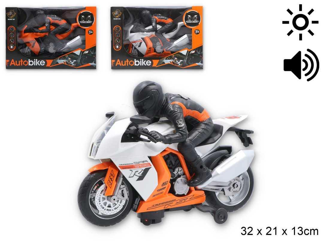 Motocykl z motocyklistą na baterie 32x21x13 cm