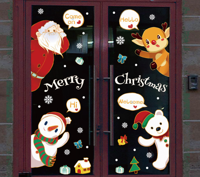 Naklejki świąteczne na okno bezklejowe MIKOŁAJ na rowerze  - 2 arkusze o wymiarach 50x35 cm