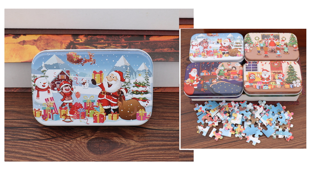 Puzzle w puszce 12,5x8x3 cm MIKOŁAJ Z PREZENTAMI 60 el.