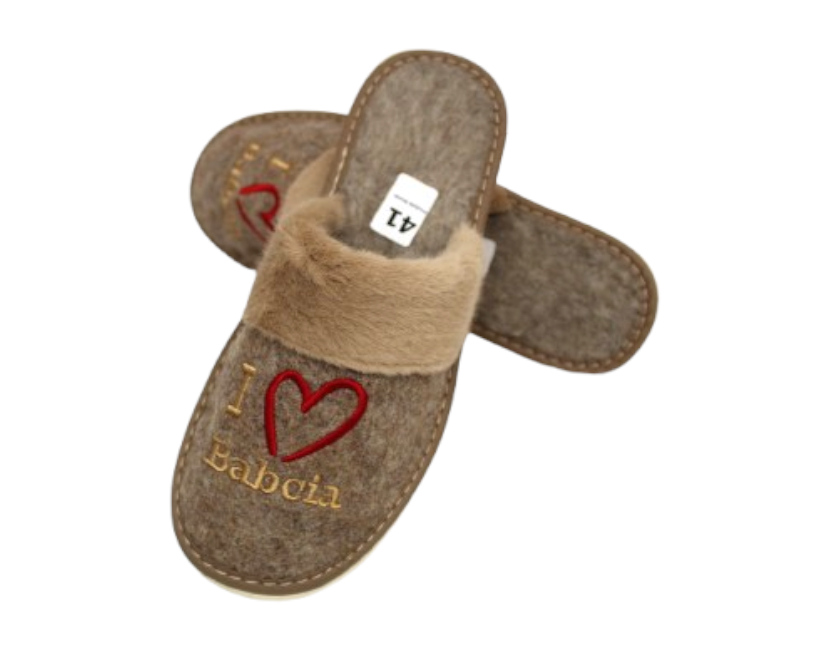 b Pantofle, klapki, kapcie I <3 BABCIA brązowe z futerkiem 36-41 (D1) - 1 para