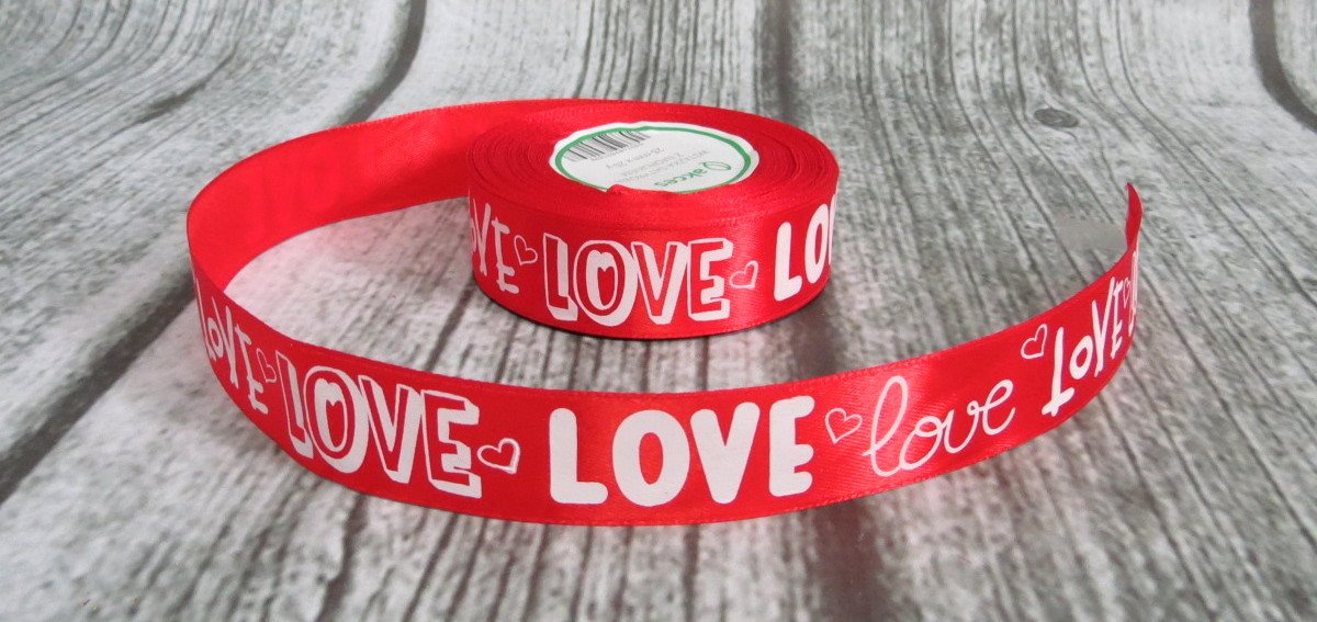 Wstążka satynowa z nadrukiem LOVE CZERWONA 25mm x 23m - 1 szt