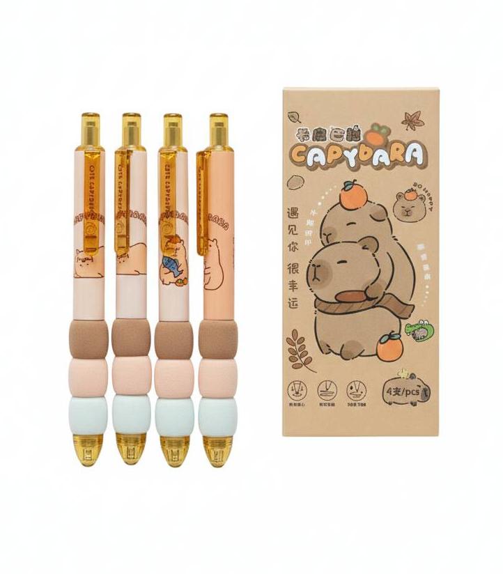 Długopis KAPIBARA żelowy 13,5 cm z antypoślizgową osłoną kpl 4 szt