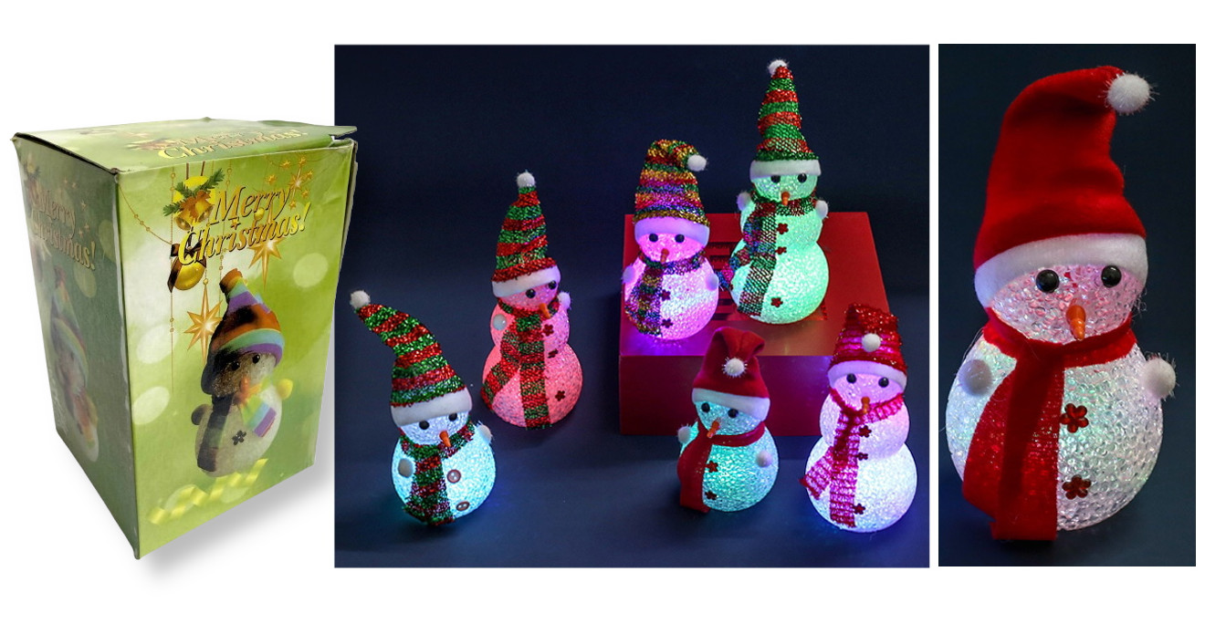 Bałwan akrylowy LED świecący RGB 14x9 cm MIX WZORÓW