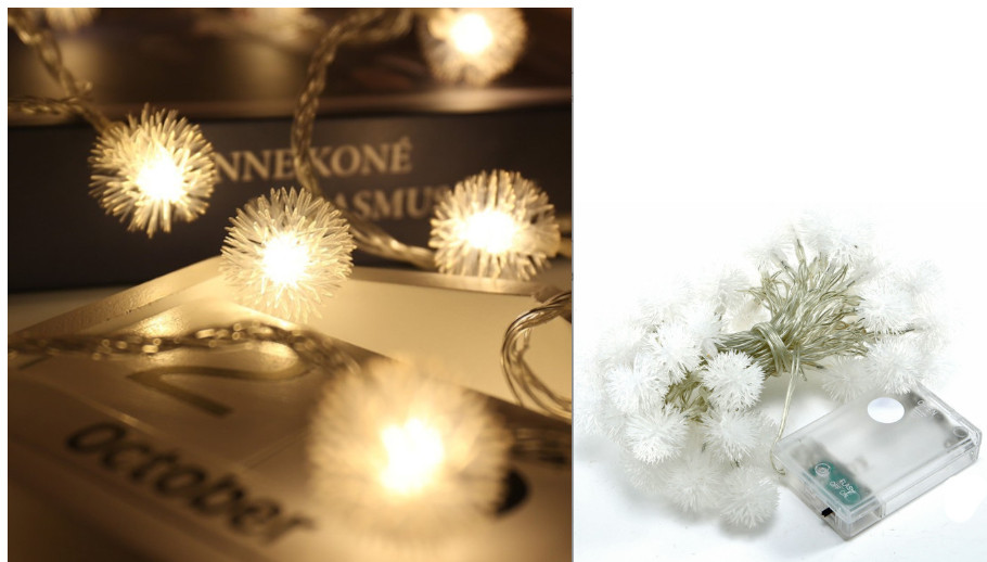 Lampki na baterie świąteczne ŚNIEŻKI, POMPONY 20 LED - 3 m białe ciepłe