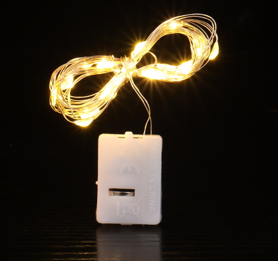 Lampki na druciku 10 LED (na baterie) - CIEPŁY BIAŁY