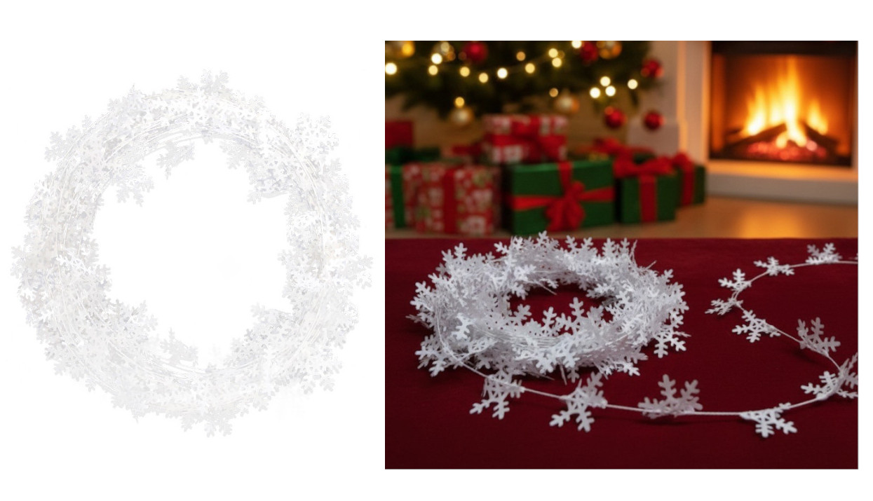 Łańcuch choinkowy, girlanda dekoracyjna ŚNIEŻYNKI 7,5 m