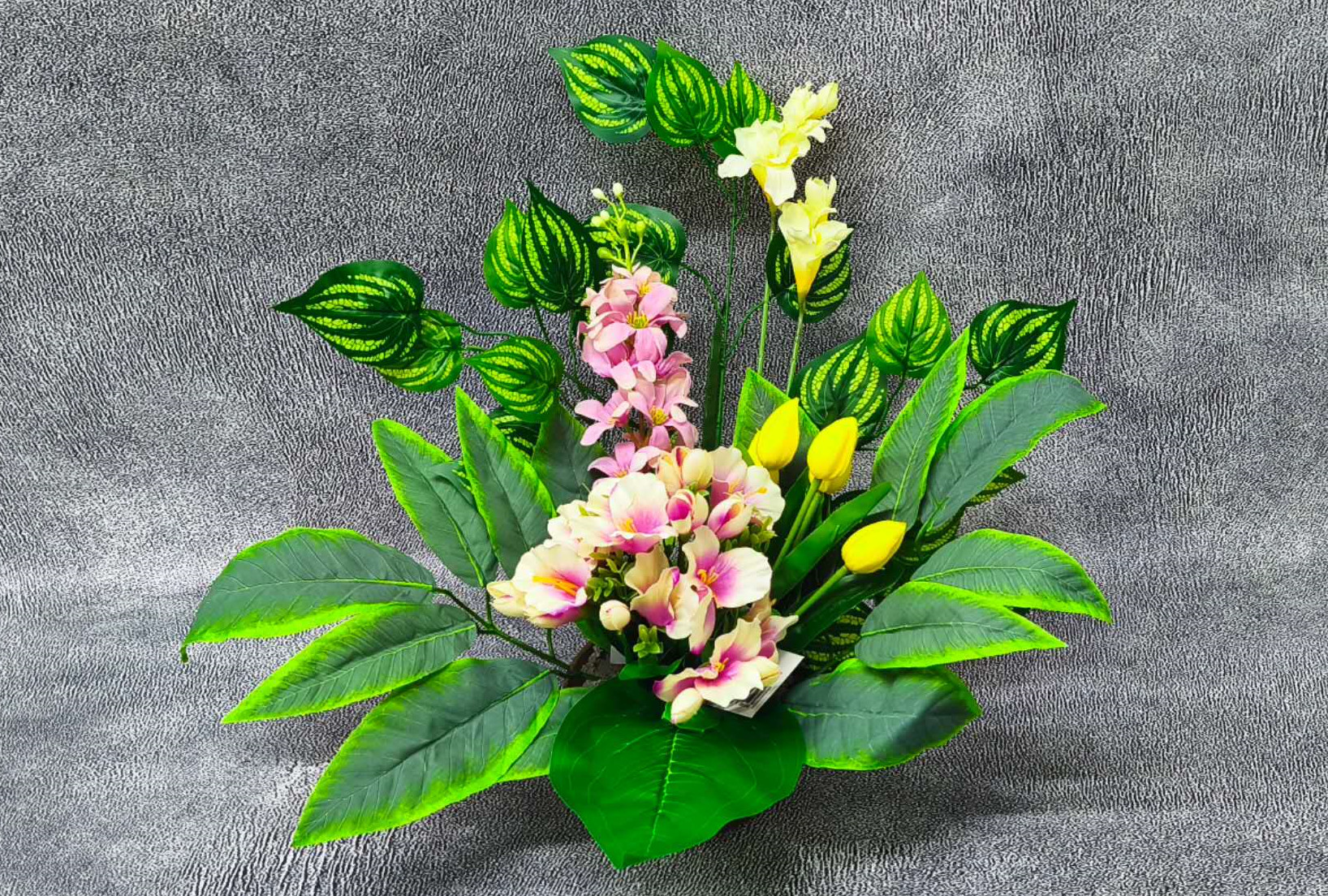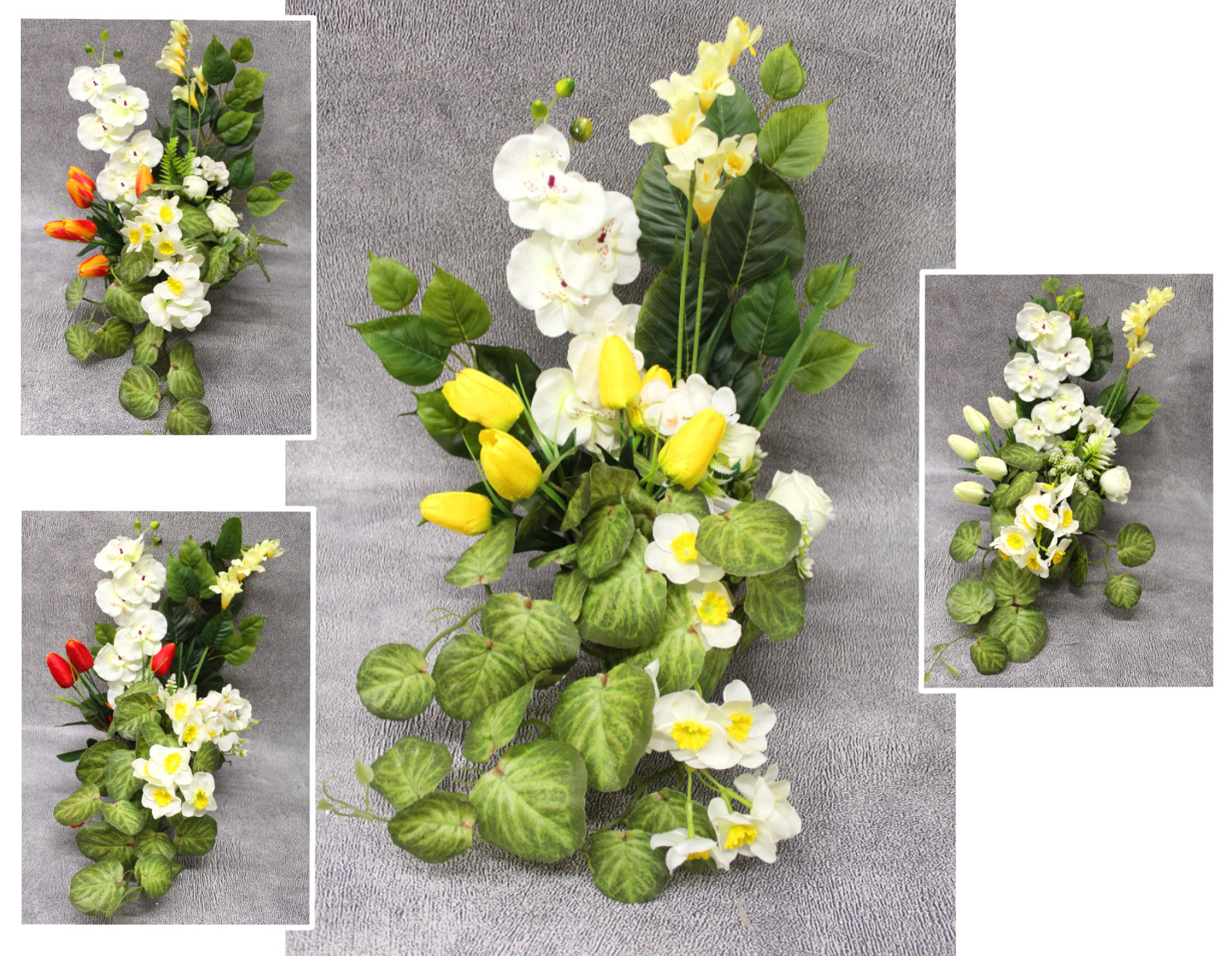 Stroik zalewany misa WIOSENNY tulipany, storczyk, różyczki, bluszcz (ok. 80x32x40 cm) ok. 1,9 kg