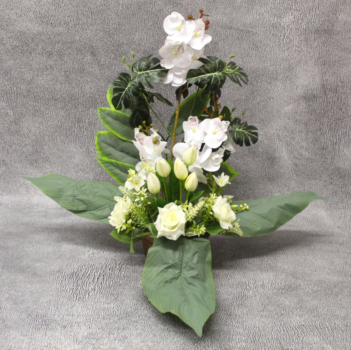 Stroik zalewany misa WIOSENNY tulipany, różyczki, storczyki BIAŁY (ok. 60x50x45 cm) ok. 1,9 kg