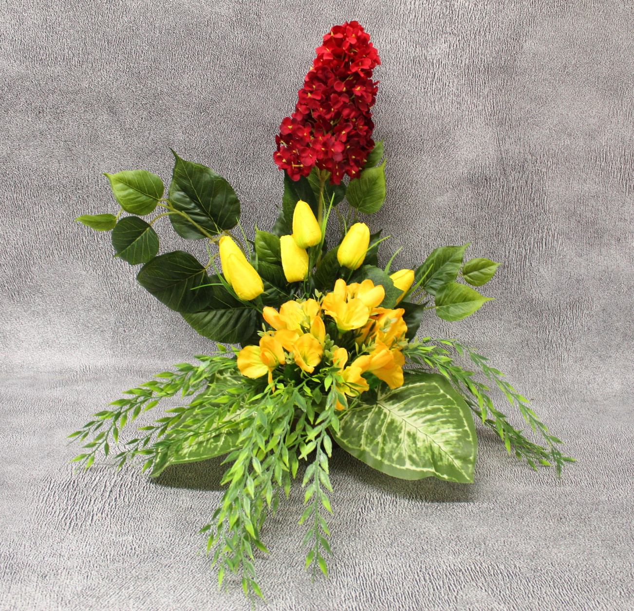 Stroik zalewany misa WIOSENNY frezje, tulipany, HORTENSJA CZERWONA (ok. 50x40x50 cm) ok. 2 kg