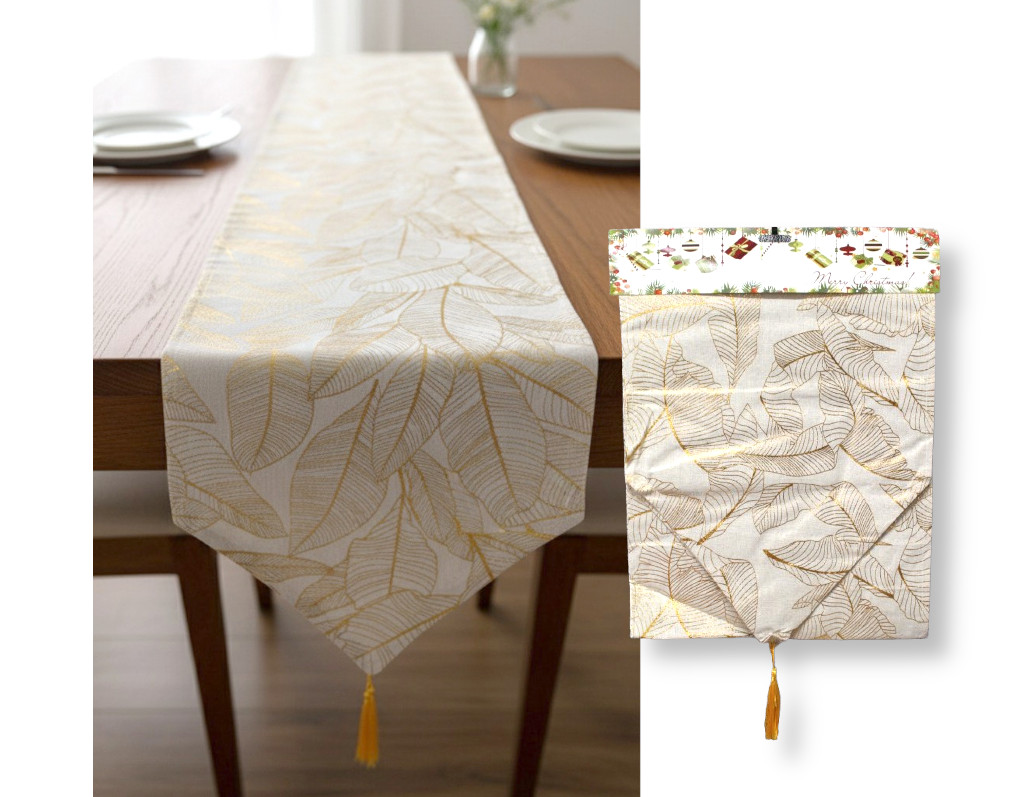 Bieżnik, szarfa na stół świąteczny, bożonarodzeniowy LIŚCIE 180x34 cm ZŁOTY