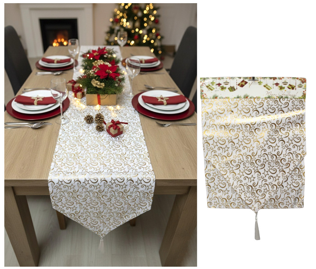 Bieżnik, szarfa na stół świąteczny, bożonarodzeniowy GWIAZDKI 180x35 cm BIAŁY