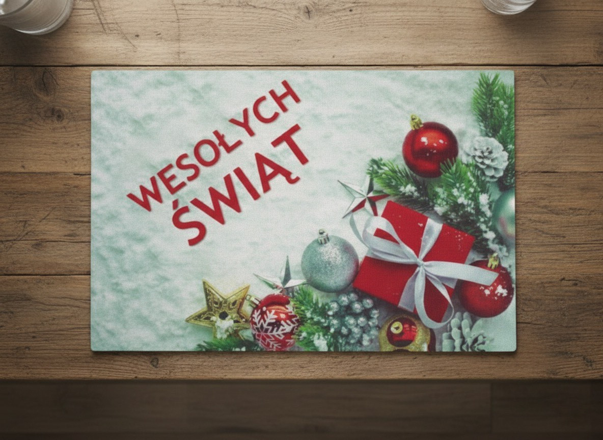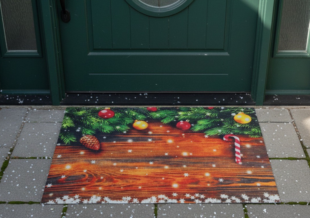 Dywan, dywanik świąteczny 60x40 cm STROIK Z BOMBKAMI I SZYSZKĄ