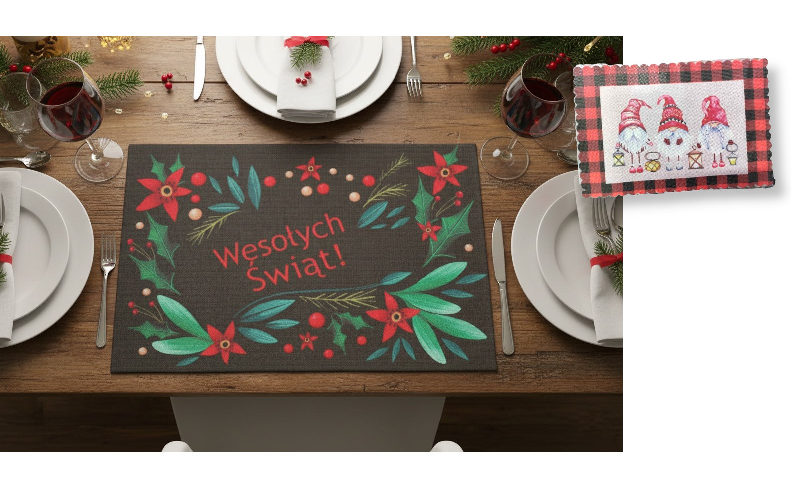 Mata stołowa- tw. sztuczne PROSTOKĄTNA 45x30 cm grafitowa WESOŁYCH ŚWIĄT MIX