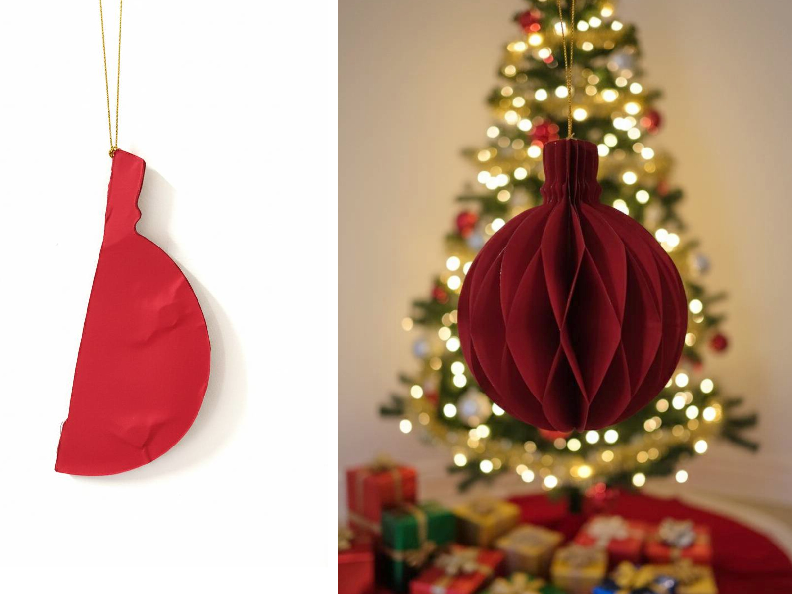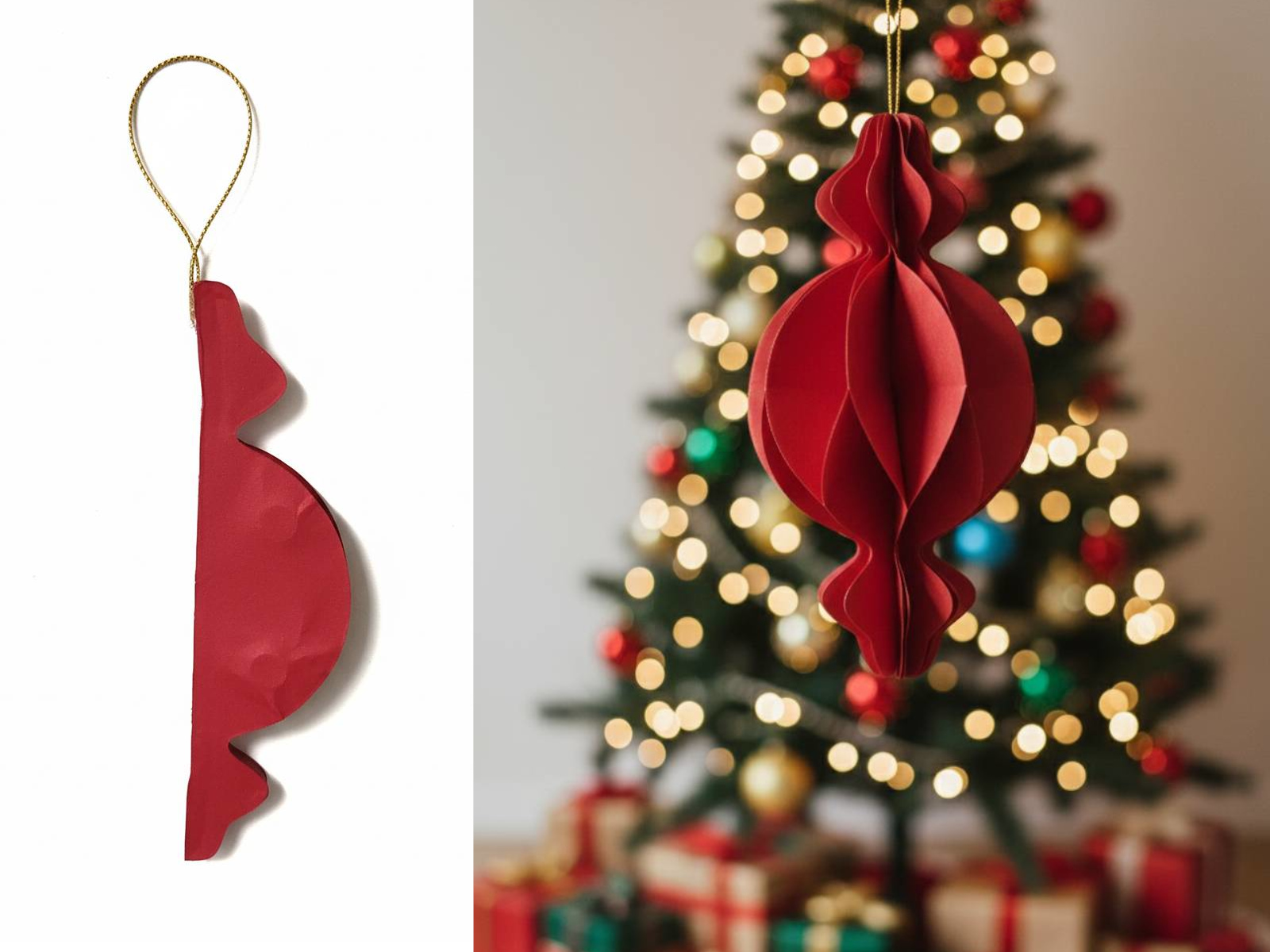 Zawieszka papierowa BOMBKA-CUKIEREK 15x8 cm CZERWONA