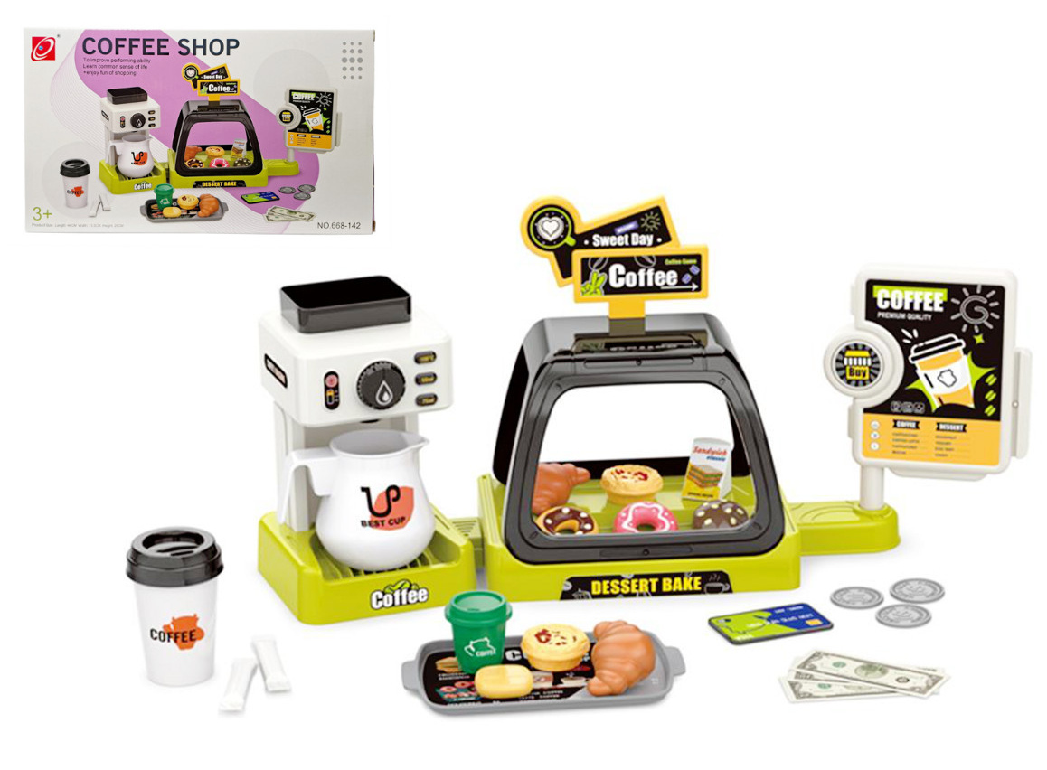 Kawiarnia z ekspresem + akcesoria (światło, dźwięk) w kartonie 29x17x14 cm