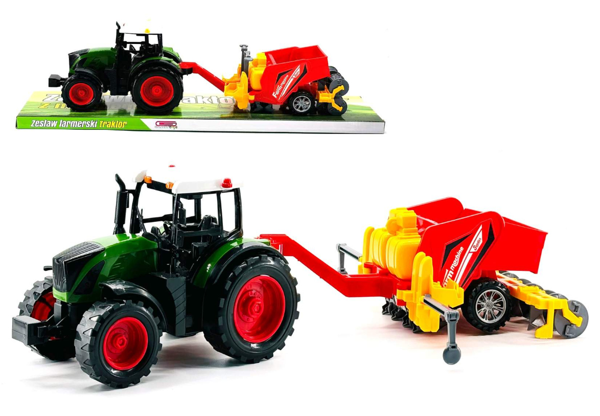 Traktor z maszyną rolniczą w kartonie 43x16x14 cm - mix