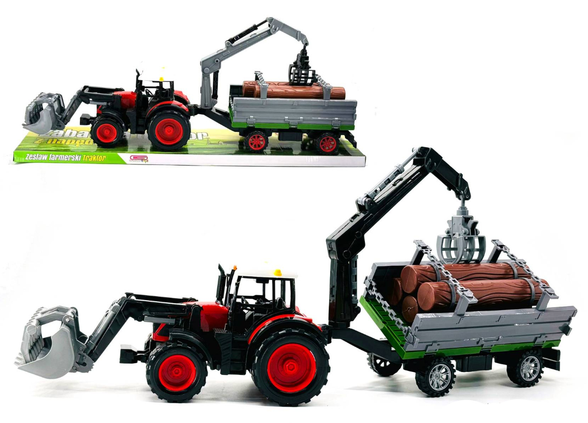 Traktor z przyczepą z belami drewna w kartonie 63x17x14 cm - mix