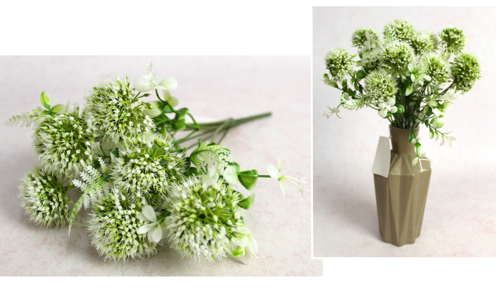 Bukiet CZOSNEK wys. 29 cm 7 łodyg (7 główek 5 cm) BIAŁO ZIELONY