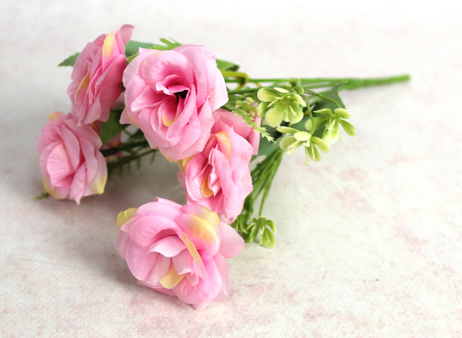 Bukiet, bukiecik RÓŻA z dodatkami wys. 30 cm 6 łodyg (kwiat 4x4 cm)KREMOWO-RÓŻOWA