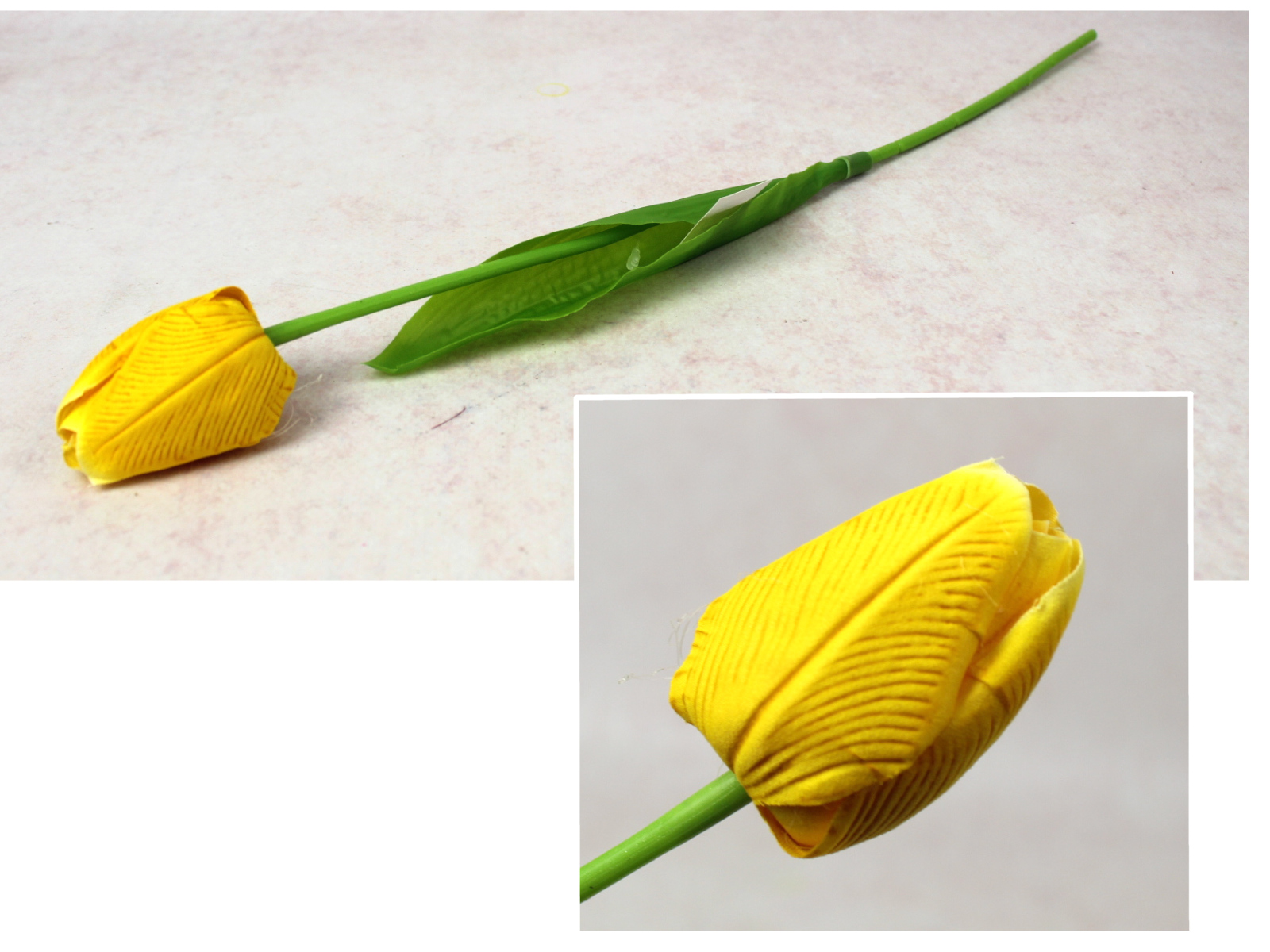 Kwiat TULIPAN piankowy wys. 40 cm (kwiat 5x4 cm)  ŻÓŁTY - 1 szt