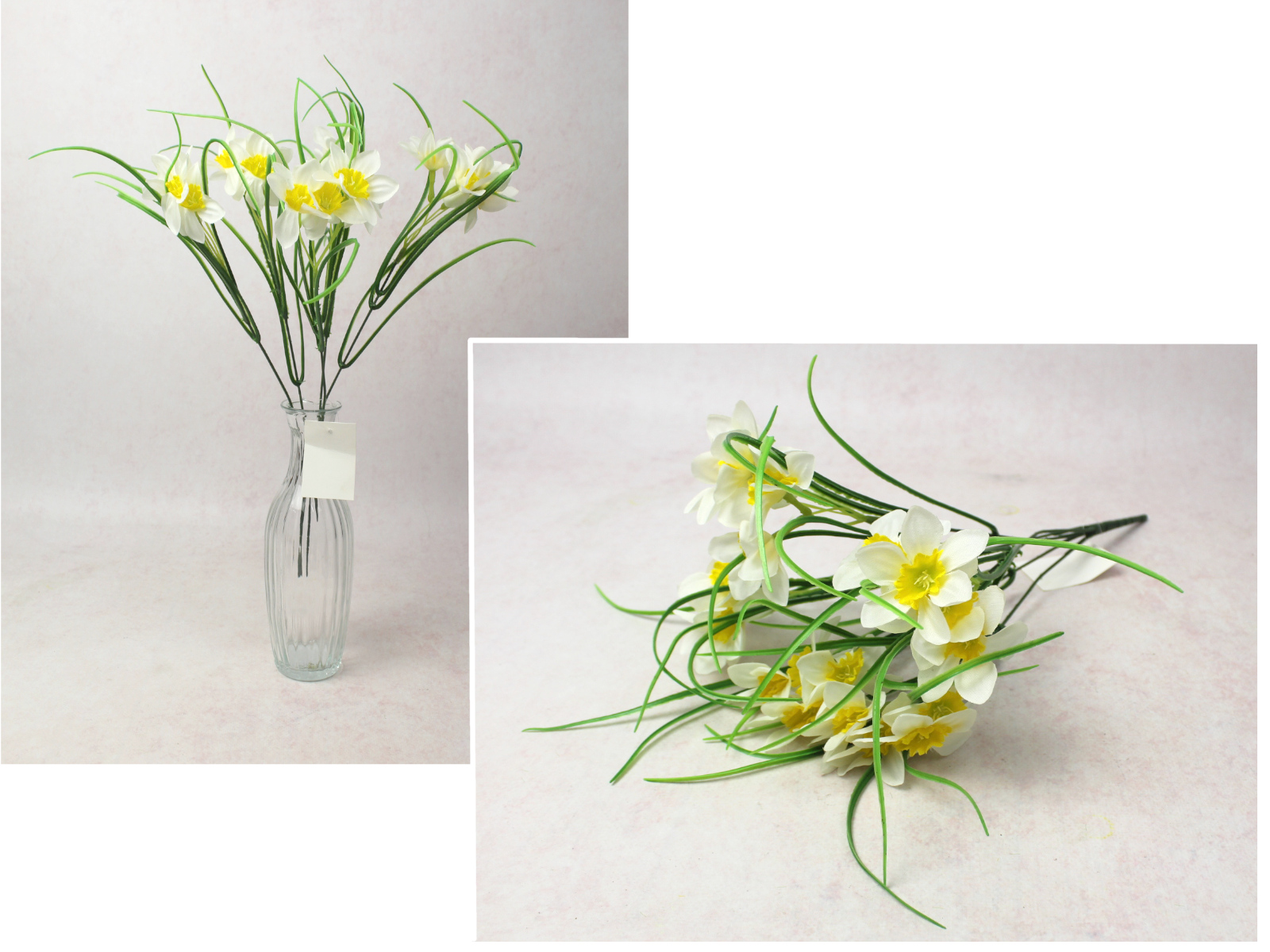 Bukiet ŻONKIL wys. 35 cm, 10 łodyg (9 kwiatów 4,5x2,5 cm) BIAŁY z żółtym środkiem